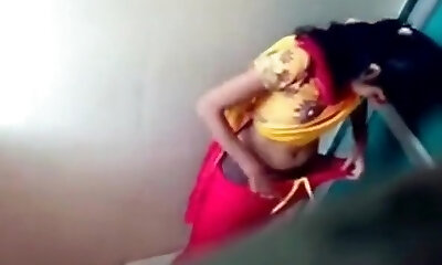 可爱的印度青少年夫妇从事热性在大学的浴室