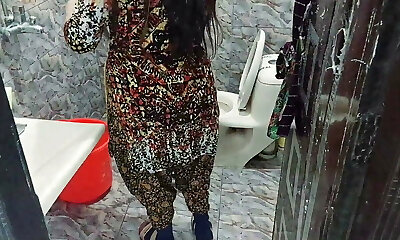 旁遮普Jatti抓住bihari手淫在她的浴室和惩罚他