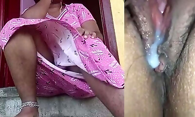 我在床上的房间里通过电话看色情视频,手里拿着阴茎泰米尔阿姨Bavana进来了,我拉着她,哈