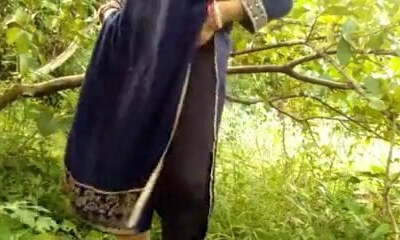 indian dame wearing traditional outfit gets fucked in her throat and pussy outdoor